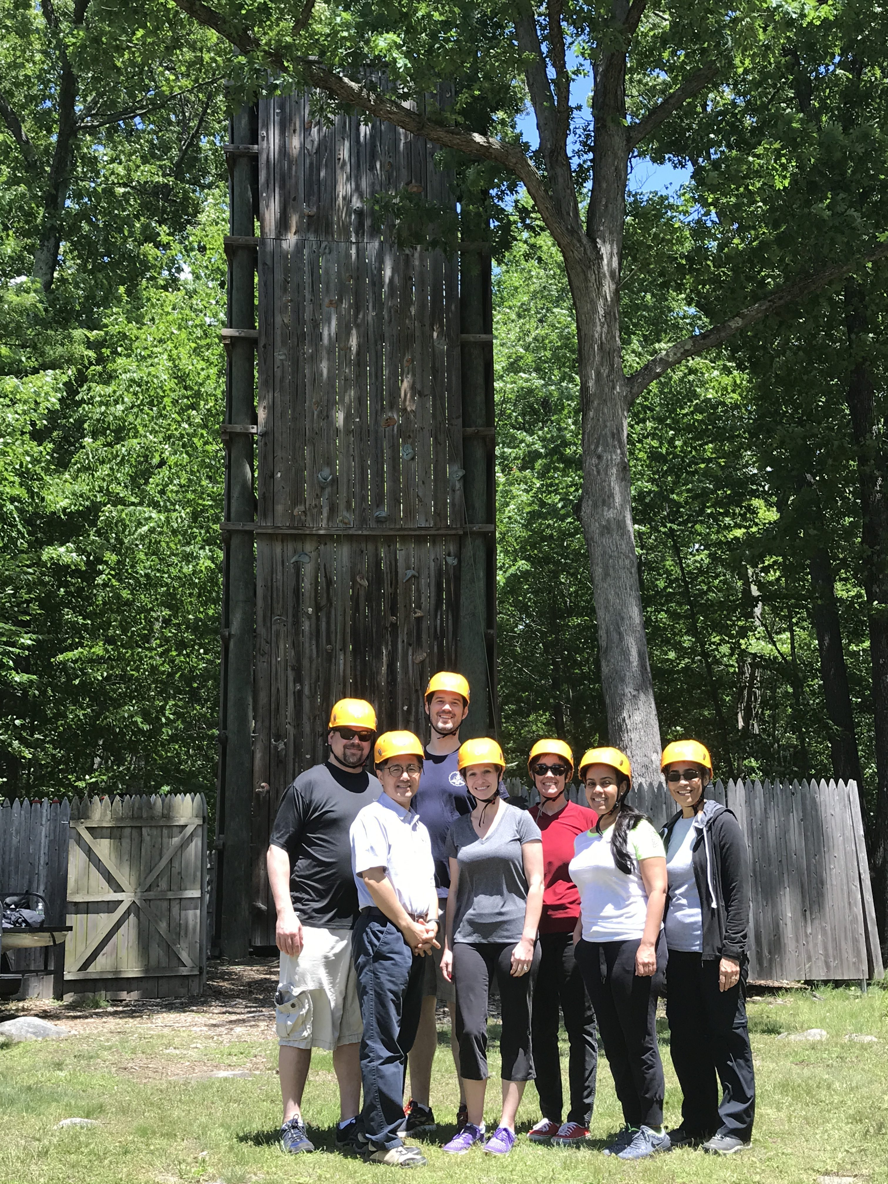 I envisioned our recent SLD Department Retreat day as “an adventure waiting to happen.” As with prior departmental retreat days, we tend to bond in nature or in some form of adventure. This time we were walking into team building activities, a ropes course and a 35-foot rock wall. There were some in our group who had mixed feelings about these team building activities. There were those who were a little apprehensive about heights, the testing of skills with balance, and the unknown of whether or not we would succeed. Like the others, I had no idea if I could successfully accomplish these tasks, but I was up for the challenge.